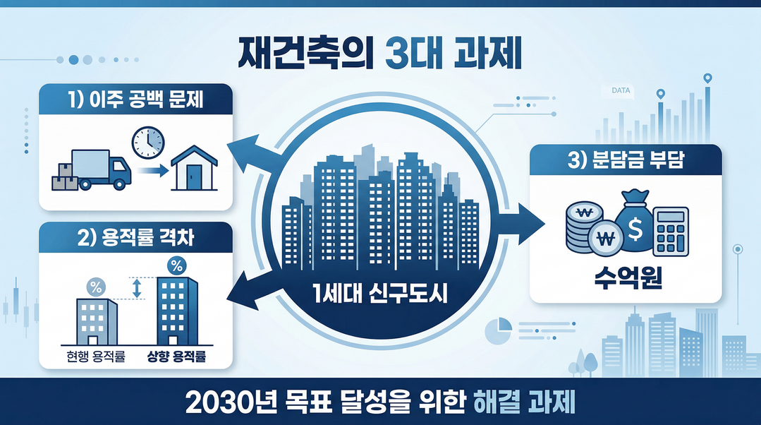 이주 주택 확보, 지역 간 용적률 형평성 재검토, 분담금 연착륙을 위한 금융 지원이 유기적으로 맞물려 돌아가지 않는다면 일정표는 숫자에 불과하다. 정부·지자체·주민이 각자의 이해관계를 넘어 협력 체계를 구축할 수 있는지가 1기 신도시 재건축의 진짜 시험대다.