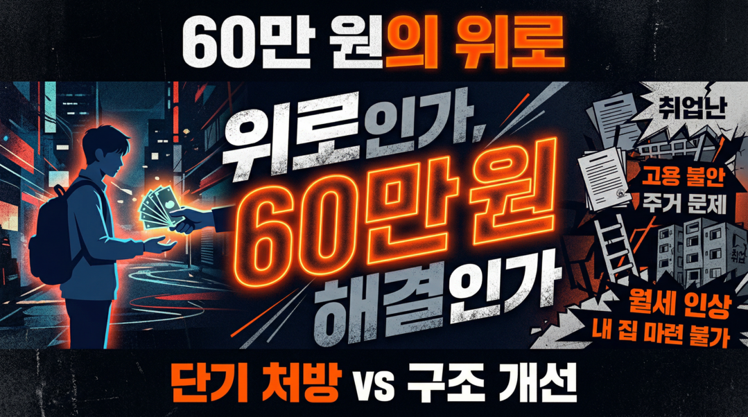 60만 원이 남긴 질문은 단순하지 않다. 청년의 미래는 지원금의 액수로 결정되지 않는다. 구조가 바뀌는 자리에서, 비로소 만들어지는 것이기 때문이다.