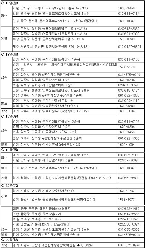 14일 부동산R114에 따르면 3월 셋째 주에는 전국 10개 단지에서 총 5천645가구(일반분양 2천837가구)가 분양을 시작한다.