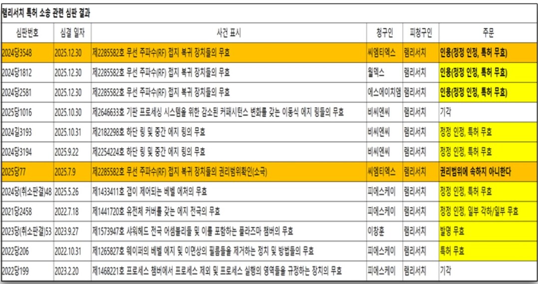 국내 기업들은 대부분 독자 기술을 적용하고 있다는 입장이며, 실제로 특허심판원 심판 결과에서도 램리서치의 특허가 무효되거나 정정된 사례가 12건 중 10건에 달했다.