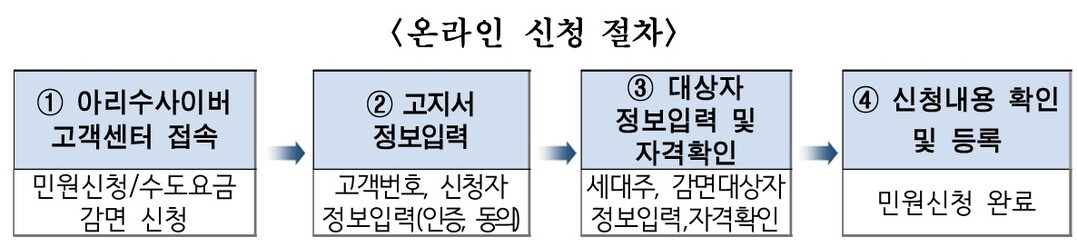 감면 신청은 1월 12일부터 주소지 관할 동주민센터에서 방문 접수할 수 있으며, 3월 3일부터는 서울아리수본부 누리집 내 ‘아리수 사이버고객센터’에서 온라인 신청도 가능하다.