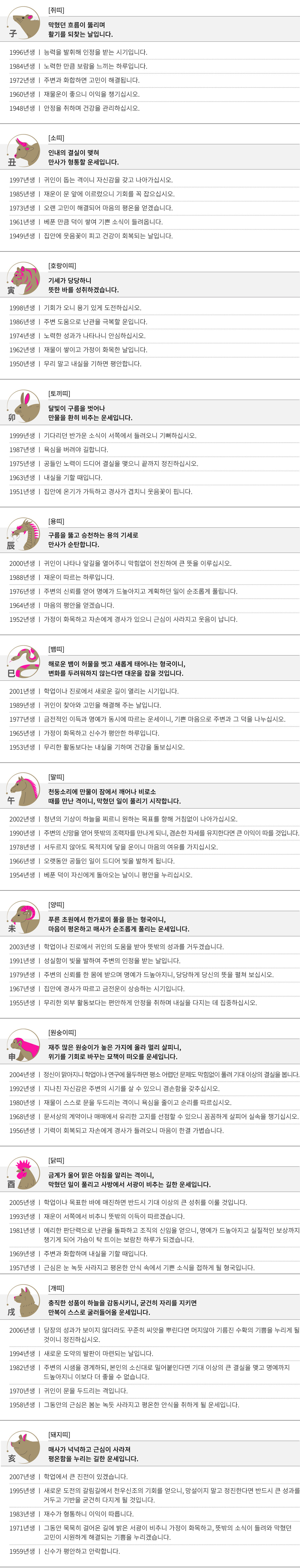 신묘 (辛卯) 오늘의 띠별 운세