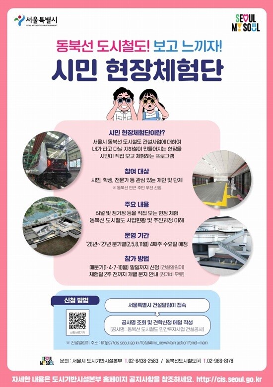 현재 동북선 도시철도(왕십리~상계, 13.4km)는 16개 정거장과 차량기지 전 구간에서 공사가 순조롭게 진행 중이며, 지난 3월 13일 전 구간 터널 관통을 완료했다. 임춘근 서울시 도시기반시설본부장은 “현장을 직접 확인한 시민의 신뢰가 곧 사업의 원동력”이라며 “마지막까지 안전을 최우선으로 최고의 품질을 갖춘 도시철도를 완성하겠다”고 강조했다.
