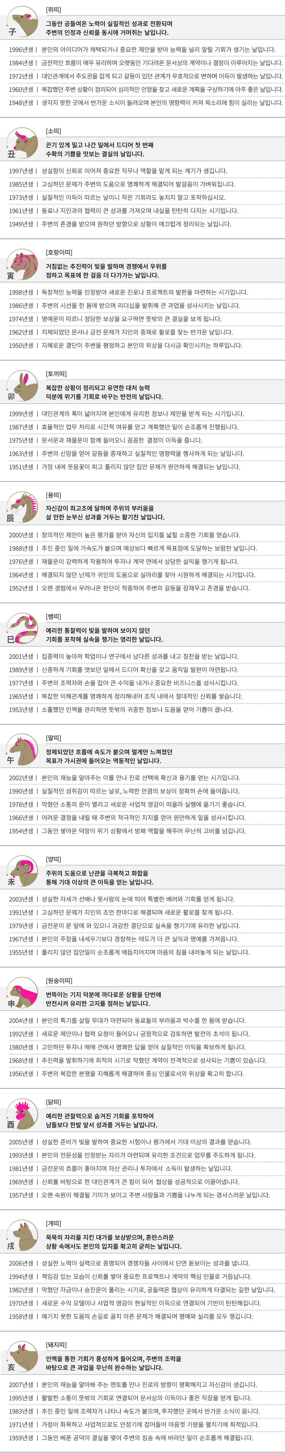 임신 (壬申) 오늘의 띠별 운세