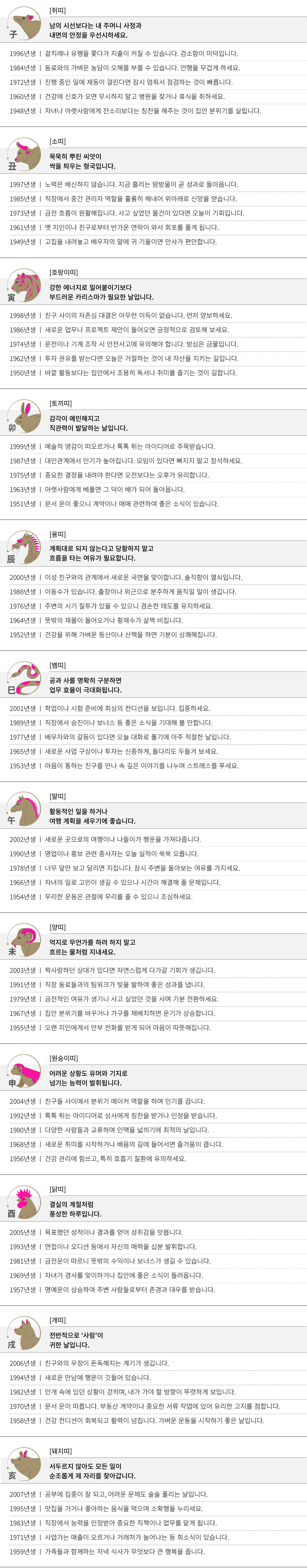 경인 (庚寅) 오늘의 띠별 운세