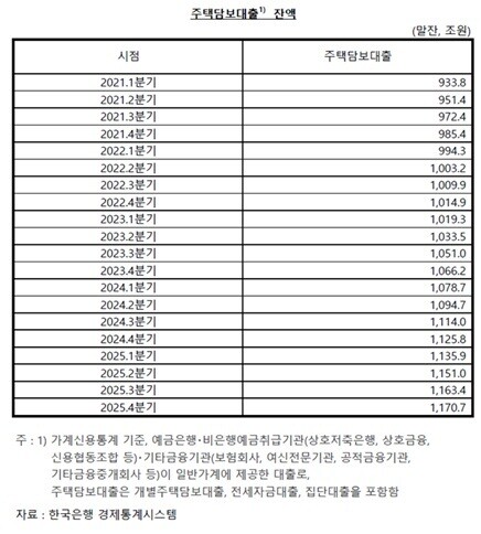 실제 최근 5년간 주택담보대출 잔액 추이를 보면, 2021년 985조원에서 꾸준히 증가해 2025년 말 기준 1,170조원을 기록했다. 이는 다주택자 대출 증가세와 맞물려 가계부채 전반의 부담을 키우는 요인으로 작용하고 있다.