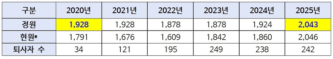보안 검색 인력 현황. (출처 : 인천공항공사) / 정일영 의원실