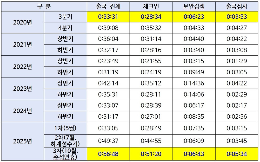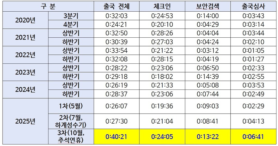 제2여객터미널] 2020~2025년 인천공항 출국 소요시간.
