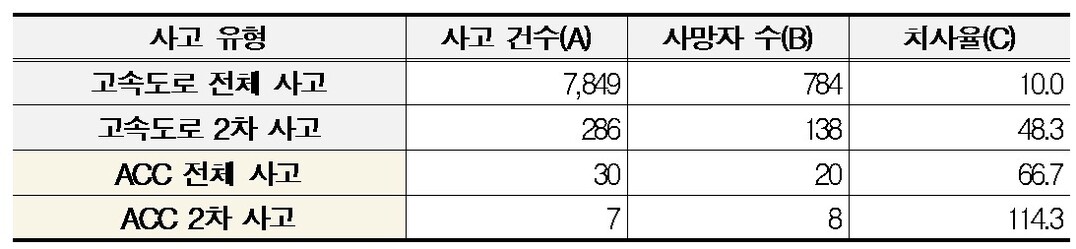 ACC 2차 사고, 치사율 11.4배