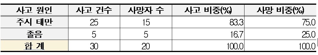 주시 태만이 압도적 원인