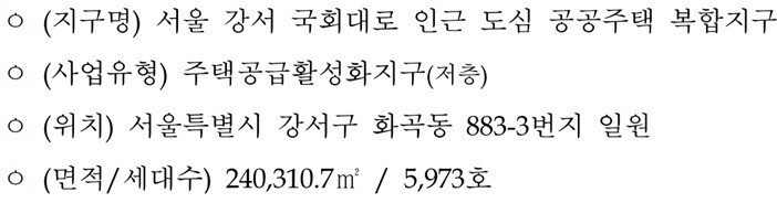 이번 사업은 총 면적 24만㎡에 5,973세대를 공급하는 대규모 개발로, LH가 추진 중인 도심복합사업 중 가장 큰 규모다. 당초 ‘화곡2동 주민센터 인근’으로 불리던 사업지는 지역 특성을 고려해 ‘강서 국회대로 인근’으로 명칭이 변경됐다.