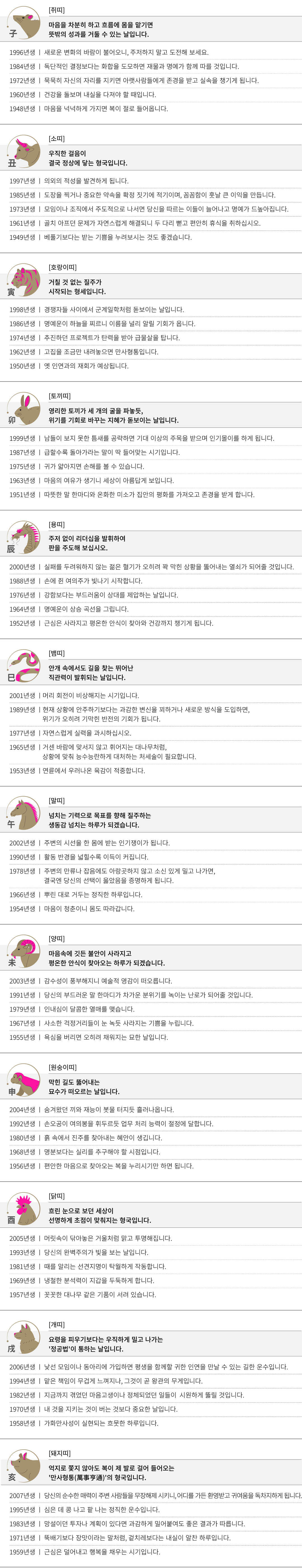 임오 (壬午) 오늘의 띠별 운세