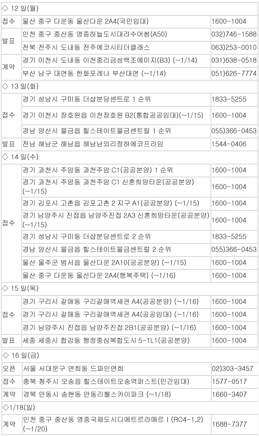 10일 부동산R114에 따르면 1월 둘째 주에는 전국 14개 단지에서 총 7천4가구(일반분양 1천631가구)가 공급된다.