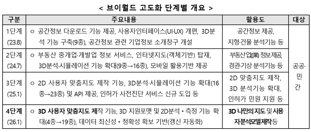[도시경제채널 = 유덕부 기자] 국토교통부가 운영하는 공간정보 오픈플랫폼 브이월드(V-World)가 19일부터 ‘4단계 고도화 서비스’를 본격 개시한다.