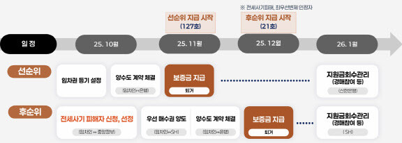4일 서울시에 따르면 퇴거를 희망하는 선순위 임차인은 11월부터, 후순위 임차인은 국토교통부의 전세사기 피해자 확정 절차가 끝나는 12월부터 보증금을 지급받을 수 있다. 시는 선지급 예산을 확보했으며 SH공사·신한은행과 협의를 마쳐 차질 없는 지원이 가능하다고 밝혔다.