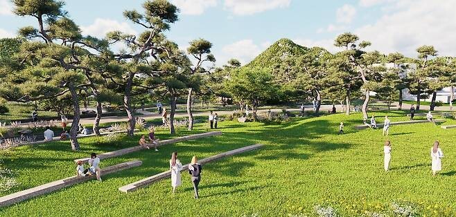 송현문화공원에는 소나무 숲을 중심으로 한 '송현산마루 숲'과 '솔담채 언덕', 차경(借景·자연에 거스르지 않고 주변 풍경을 경관의 소재로 활용하는 기법)을 적용한 '차경 파고라', 물길과 수변 식생이 어우러진 '송현물길', 그늘 쉼터 등 휴게공간이 들어선다.