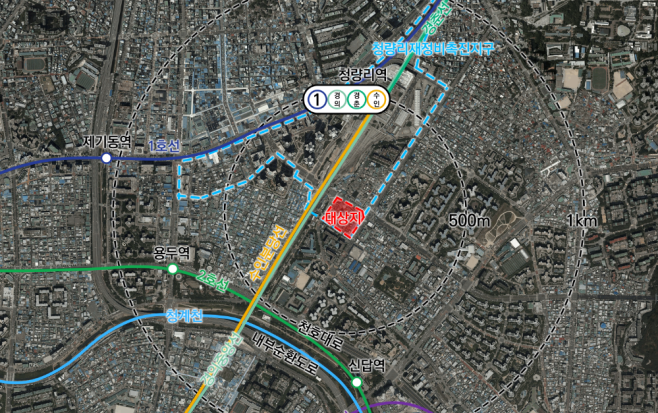 용적률 상향은 서울시가 지난해 7월 발표한 '재정비촉진계획 수립기준 개선안'을 적용한 결과다. 기준용적률을 최대 30%까지 완화하고 법적상한용적률을 기존의 1.2배로 확대했다. 서울시에 따르면 늘어난 세대 가운데 공공주택은 134세대이며, 법적상한용적률 적용으로 증가한 용적률의 50%를 공공주택으로 건립하는 기준에 따라 이 중 73세대가 산정됐다. 최고 높이는 기존 30층에서 45층으로 변경됐다. 서울시는 청량리 광역중심의 도시 여건 변화를 반영한 조치라고 설명했다.