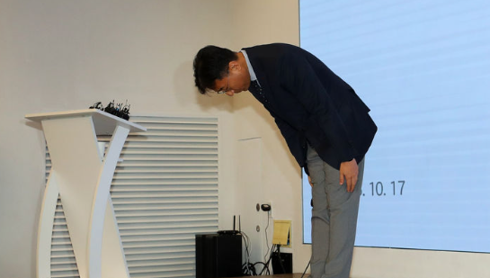 서창석 KT 네트워크 부문 부사장이 17일 서울 종로구 KT 광화문빌딩 웨스트 사옥에서 열린 소액결제 피해 관련 기자 브리핑에 앞서 고개 숙여 사과하고 있다.