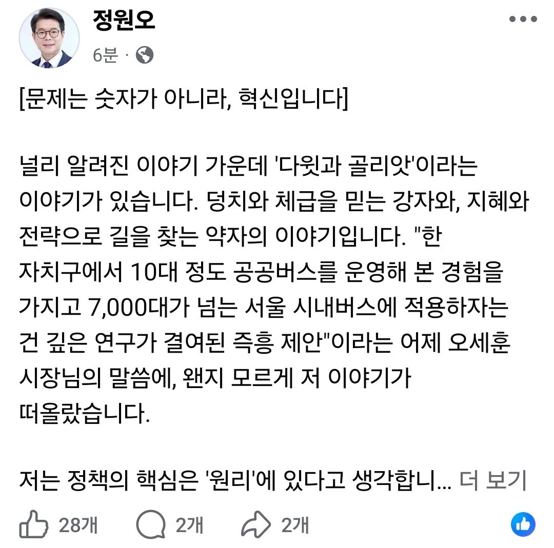 그는 “작게 시작해 검증하고 확장하는 것이 혁신”이라며, 오 시장의 비판을 ‘덩치 논리’에 불과하다고 맞받았다.