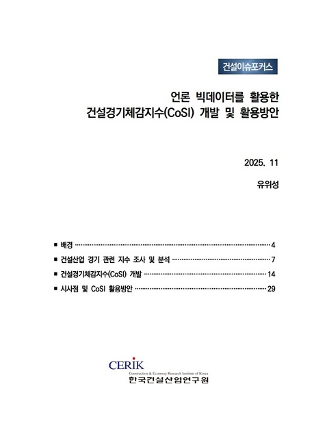 건설경기 흐름, 빅데이터로 읽는다… 한국건설산업연구원 ‘건설경기체감지수(CoSI)’ 개발