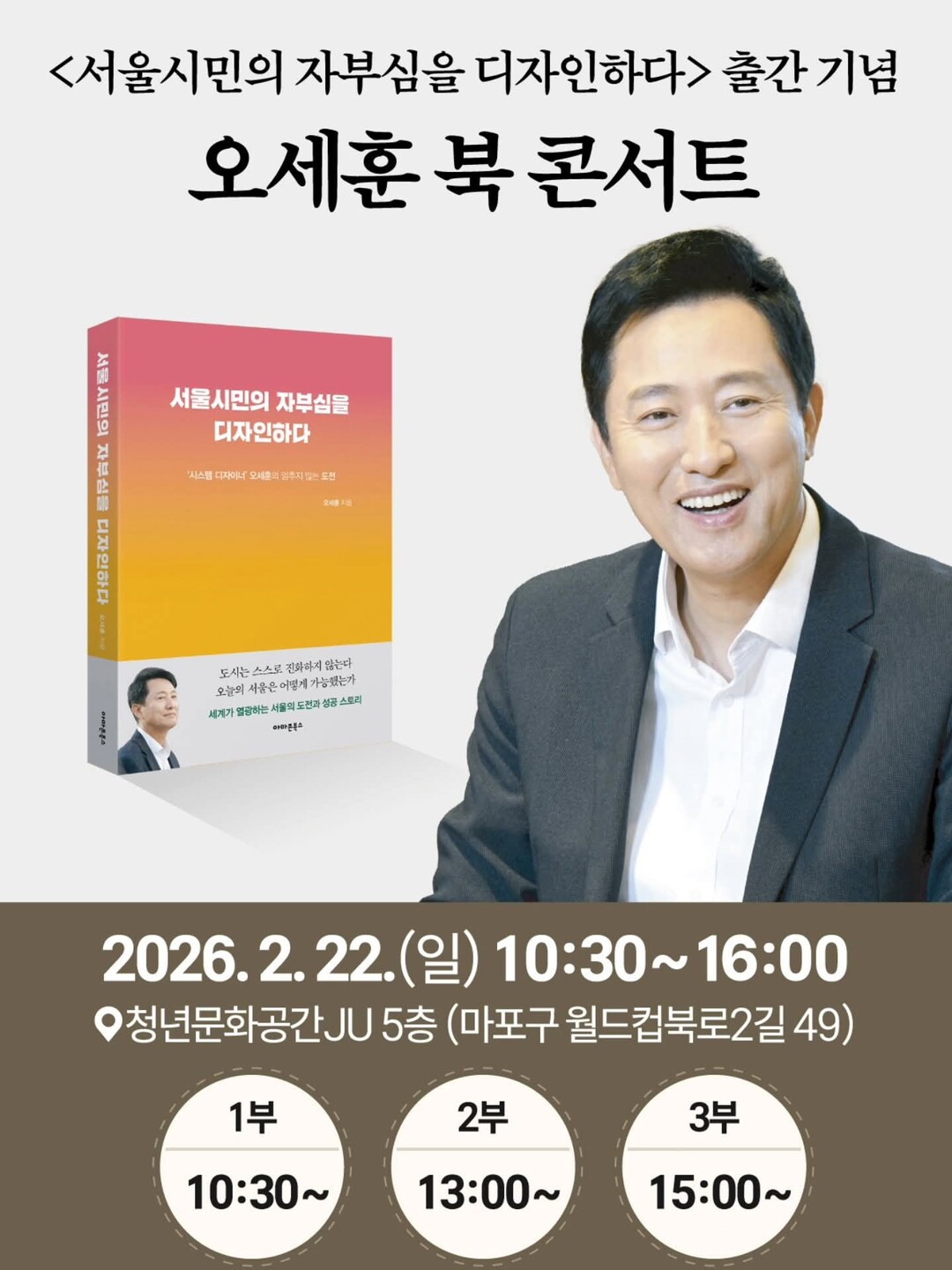 오 시장은 “서울시민의 자부심을 함께 나누는 자리”라며 시민들의 많은 참여를 당부했다. 이번 북 콘서트는 책의 출간을 기념하는 동시에 서울시민과 소통하는 문화 행사로 마련돼, 서울의 가치와 미래 비전을 공유하는 의미 있는 시간이 될 것으로 기대된다.