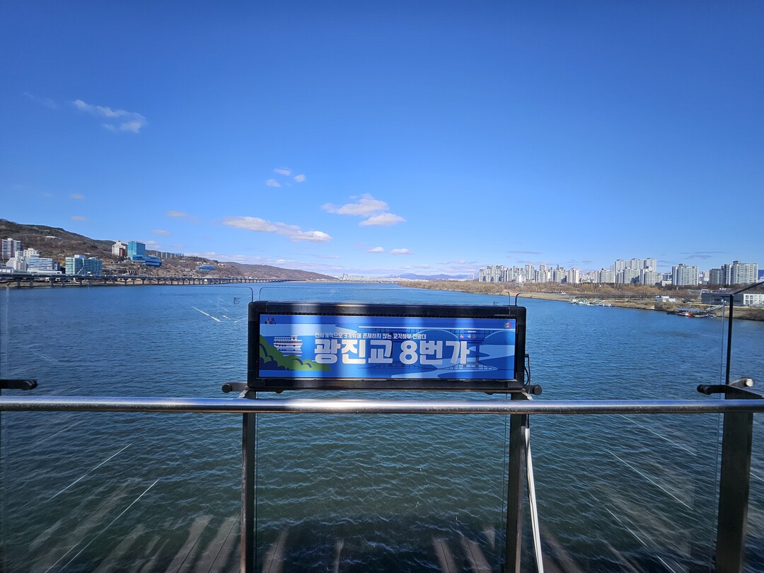 광진교 8번가는 교각 하부에 위치한 세계적으로도 드문 전망 공간이다. 사방이 통유리창으로 조성돼 한강의 풍경을 한눈에 담을 수 있으며, 바닥의 강화유리 구간에서는 물 위를 걷는 듯한 아찔한 경험을 제공한다. 라운지에서는 잔잔한 음악과 함께 휴식을 취할 수 있어 가족 단위 방문객들에게 차분한 쉼터가 된다.
