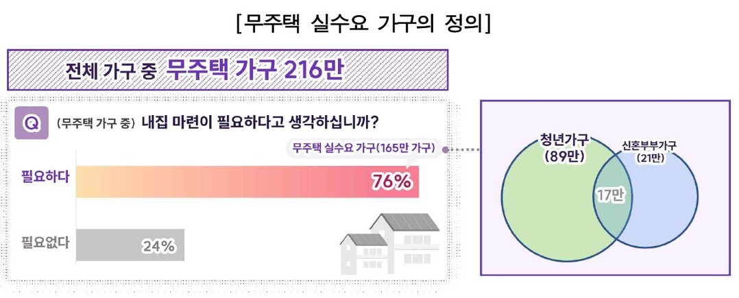 [도시경제채널 = 윤문용 기자] 서울시가 22일 발표한 ‘2024 서울시 주거실태조사’ 분석에 따르면 서울의 무주택 가구 216만 중 76%인 165만 가구가 내집 마련이 필요하다고 응답했다. 특히 청년 실수요 가구의 88%, 신혼부부의 86.6%가 투기가 아닌 안정적 실거주 목적을 이유로 주택 구입을 원한다고 밝혔다.