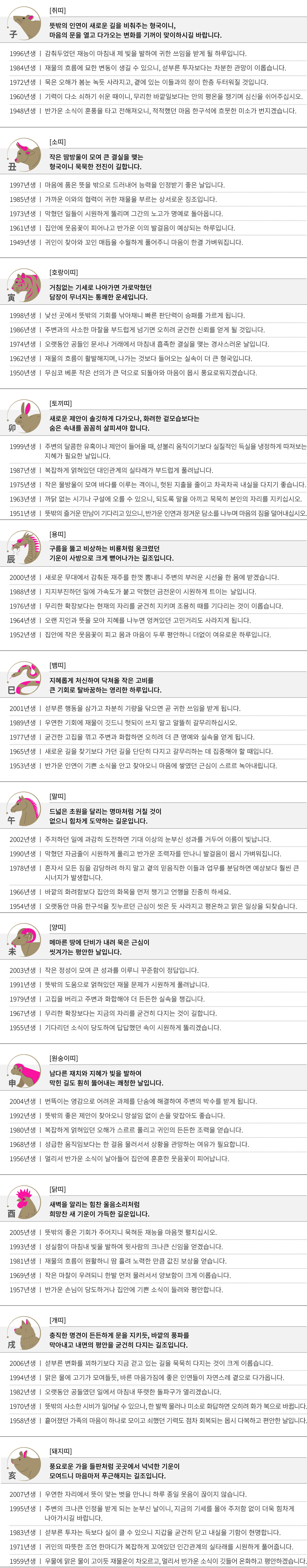 임오 (壬午) 오늘의 띠별 운세