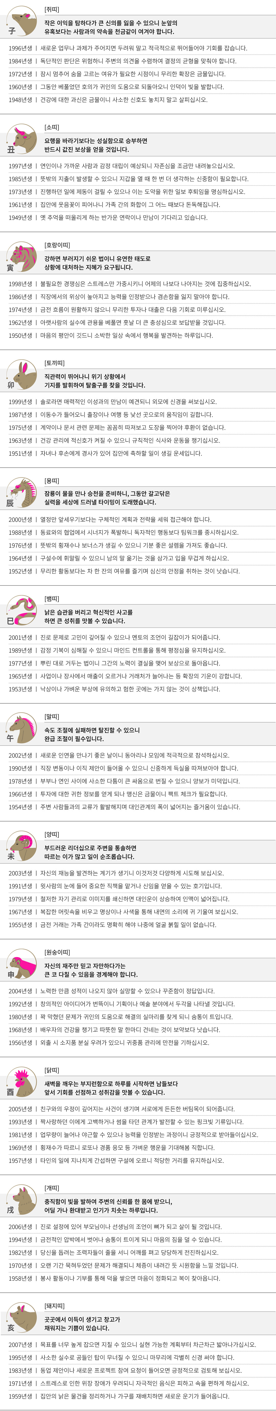 을묘 (乙卯) 오늘의 띠별 운세