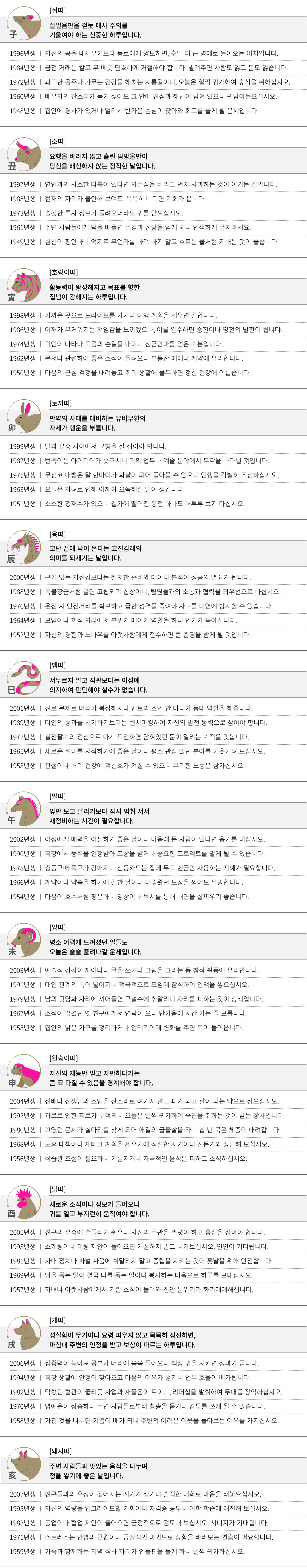 정사 (丁巳) 오늘의 띠별 운세
