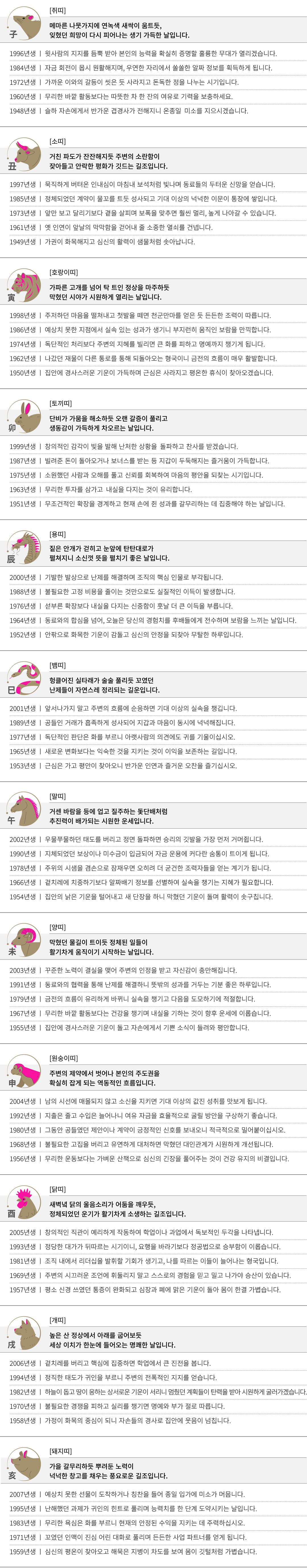 갑신 (甲申) 오늘의 띠별 운세