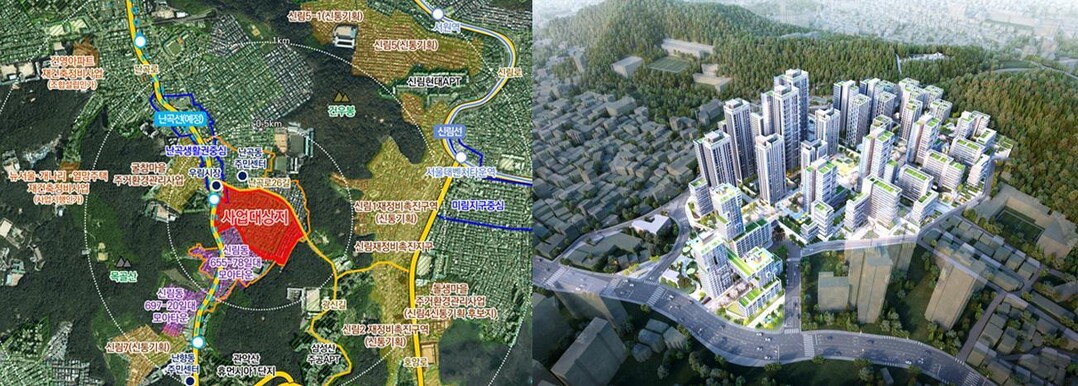 신림5구역(신림동 412 일대)은 신림선 서원역 인근 역세권에 위치한 구릉지 형태의 주거지다. 최고 34층, 3천973가구(공공주택 624가구 포함) 규모의 대단지 아파트로 탈바꿈할 예정이다.