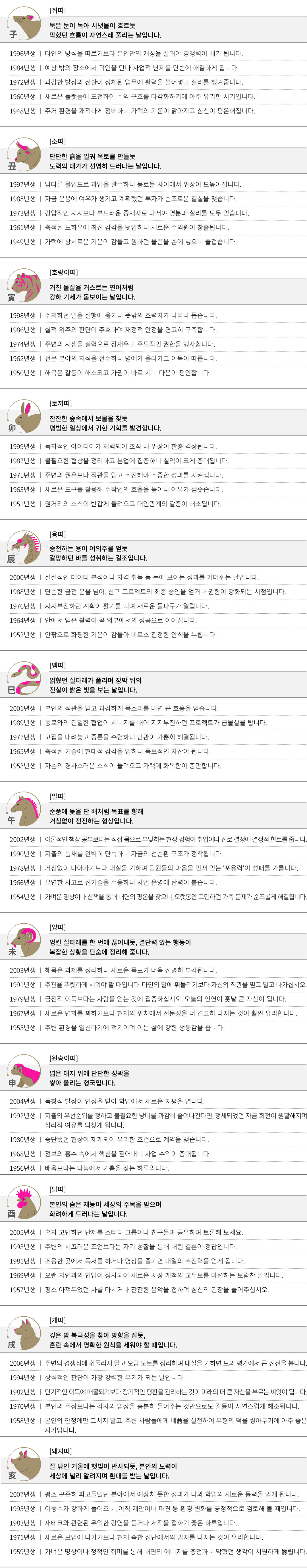 무자 (戊子) 오늘의 띠별 운세