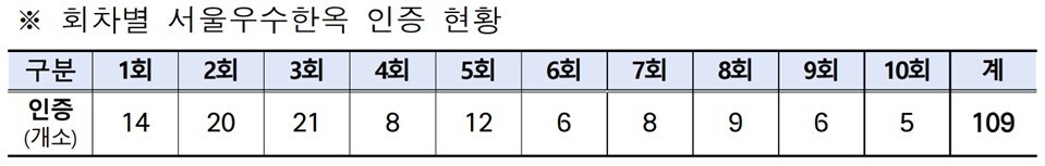 [도시경제채널 = 유주영 기자] 서울시가 도심 속 한옥의 멋과 가치를 알리기 위해 추진해온 ‘서울우수한옥 인증제’가 올해로 10회를 맞아 종로·은평·용산·서초 등지의 한옥 5곳을 새롭게 선정했다고 10일 밝혔다. 이번 인증으로 2016년 시작 이후 총 109개소가 ‘서울우수한옥’으로 이름을 올렸다.