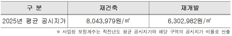 이에 따라 분양 가능한 세대수가 148세대 증가해 조합원 1인당 약 3,800만 원의 분담금이 줄어들 것으로 추산된다. 서울시는 올해 보정계수 산출 기준인 ‘2025년 평균 공시지가’를 재건축 약 804만 원, 재개발 약 630만 원으로 공고해 사업 예측 가능성을 높였다.