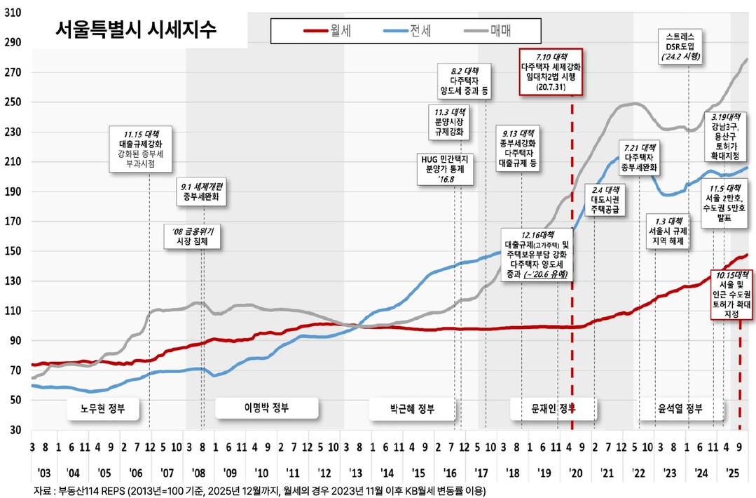 또한 이 교수는 “2020년 이후 강력한 세금 규제와 거래 제한으로 시장 거래량은 급감했지만, 가격은 오히려 폭등했다”며 “규제가 가격을 잡는다는 믿음은 현실과 어긋난다”고 말했다. 그는 “전세·월세도 5년간 각각 25% 이상 상승했고, 특히 월세는 저소득층의 주거 불안을 심화시키고 있다”고 분석했다.