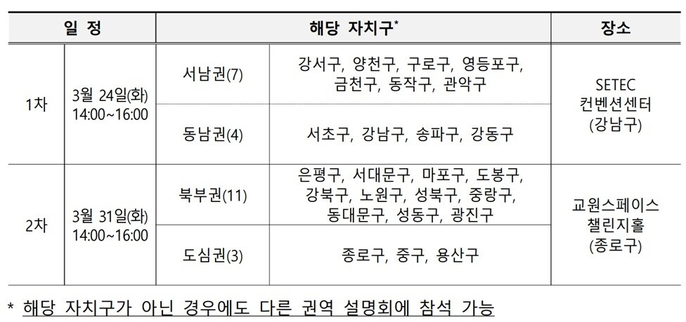 이를 위해 3월 24일과 31일 두 차례 권역별 설명회를 열어 주민과 자치구에 공모 절차를 안내하고, 기존 사업지 주민대표가 직접 경험을 공유하는 자리도 마련한다.