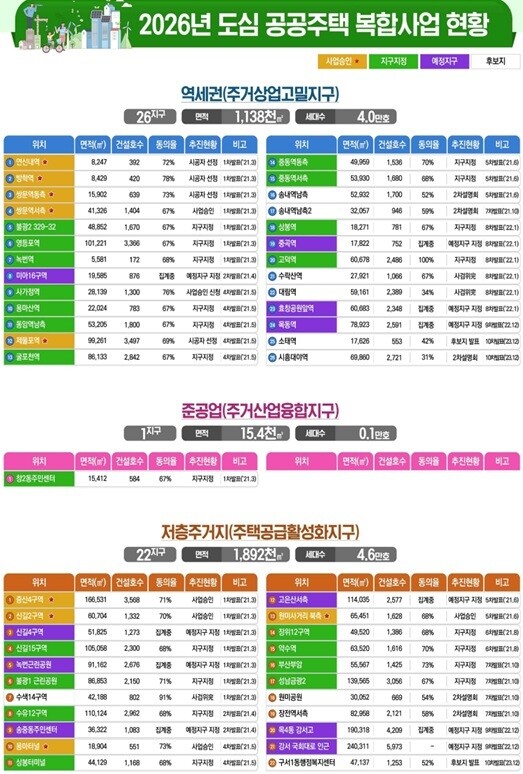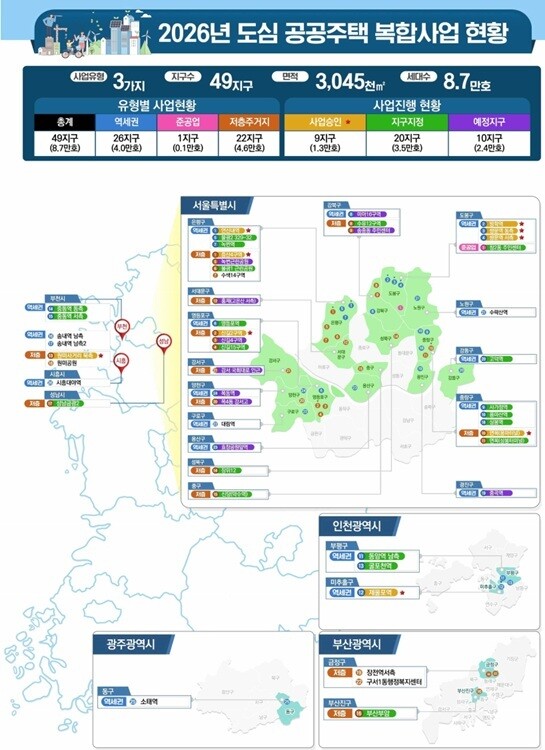 이번 공모는 정부가 직접 노후 도심 재개발에 나서 주택 공급을 확대하는 ‘도심복합 시즌2’의 출발점으로, 서울 도심 곳곳에 새로운 아파트 공급의 길을 열어줄 것으로 기대된다.