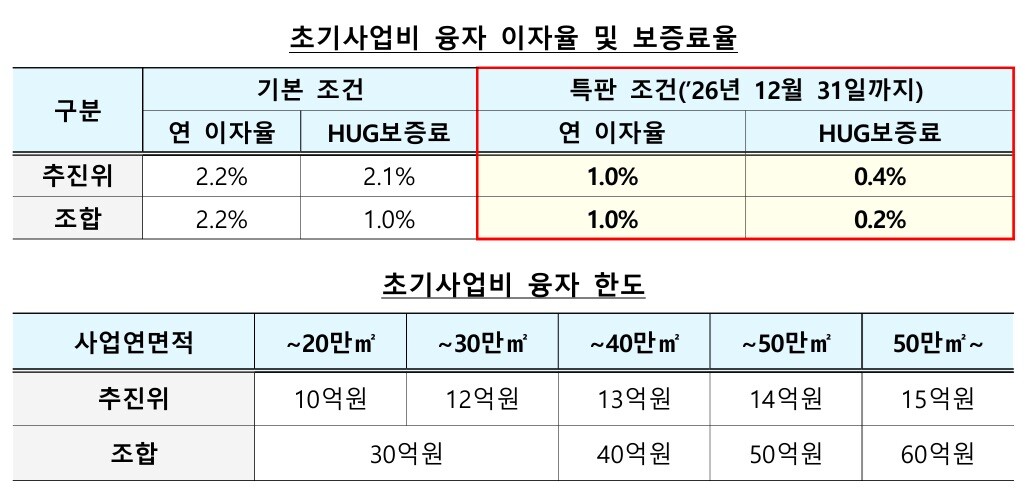 [도시경제채널 = 유덕부 기자] 국토교통부가 재건축·재개발 사업 추진위와 조합을 대상으로 초기사업비 융자 이자율을 대폭 낮춘 1년 한시 특판 상품을 출시했다고 8일 밝혔다. 이번 조치는 사업 초기 자금 조달에 어려움을 겪는 현장의 목소리를 반영해 마련된 것으로, 용역비·운영비·총회 개최비 등 필수 사업비를 저리로 융자해 신속한 정비사업 추진을 돕는 것이 목적이다.