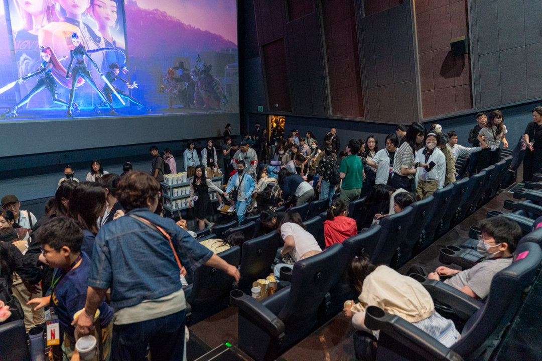 1일 오전 롯데시네마 건대입구에서 열린 넷플릭스 배리어프리 상영회에서 서울맹학교와 서울애화학교 학생 200여 명이 '케이팝 데몬 헌터스' 화면해설 버전을 감상하기 위해 착석하고 있다./넷플릭스