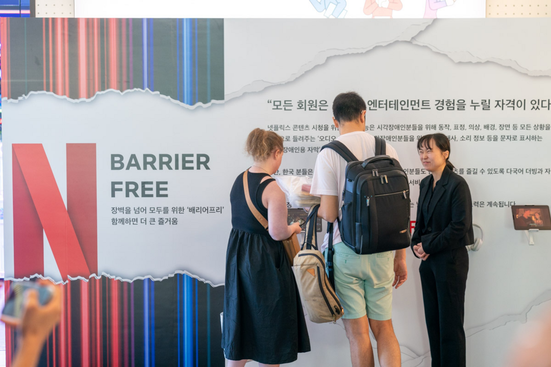 넷플릭스는 배리어프리 경험 확산을 위해 국내외 협업도 이어가고 있다. 지난해 에버랜드와 함께 '지금 우리 학교는'과 '기묘한 이야기' 테마존을 운영했고, 올해도 '케이팝 데몬 헌터스' 테마존을 선보였다. 또한 장애인미디어축제 후원과 배리어프리영화위원회 협업을 통해 사회적 확산을 지원하고 있다.