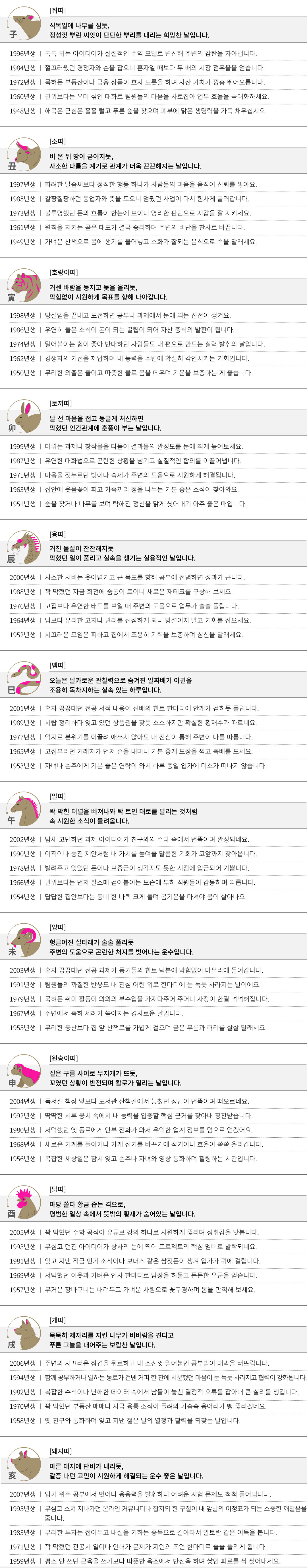 기유 (己酉) 오늘의 띠별 운세