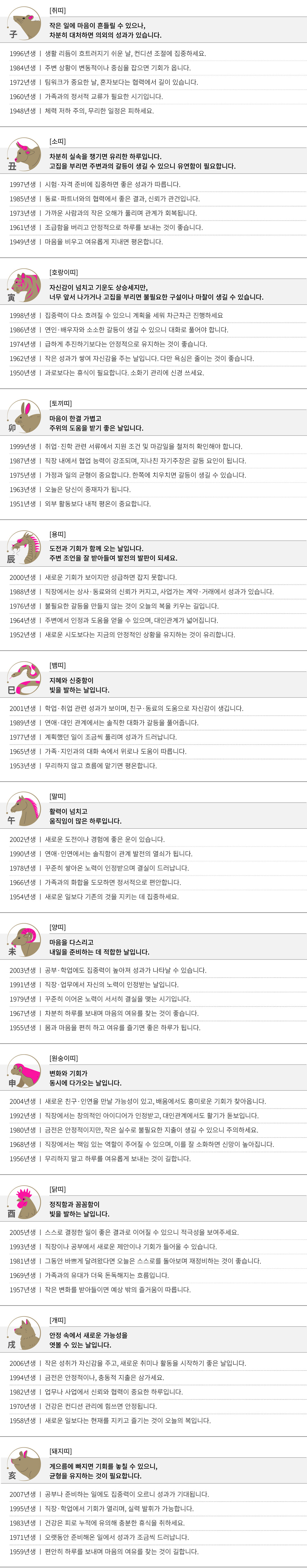 신해(辛亥) 오늘의 띠별 운세