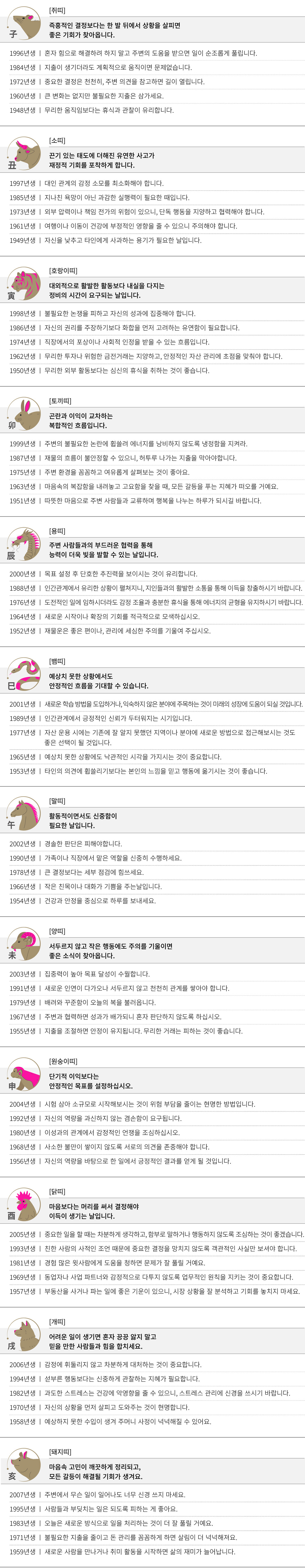신미 (辛未) 오늘의 띠별 운세