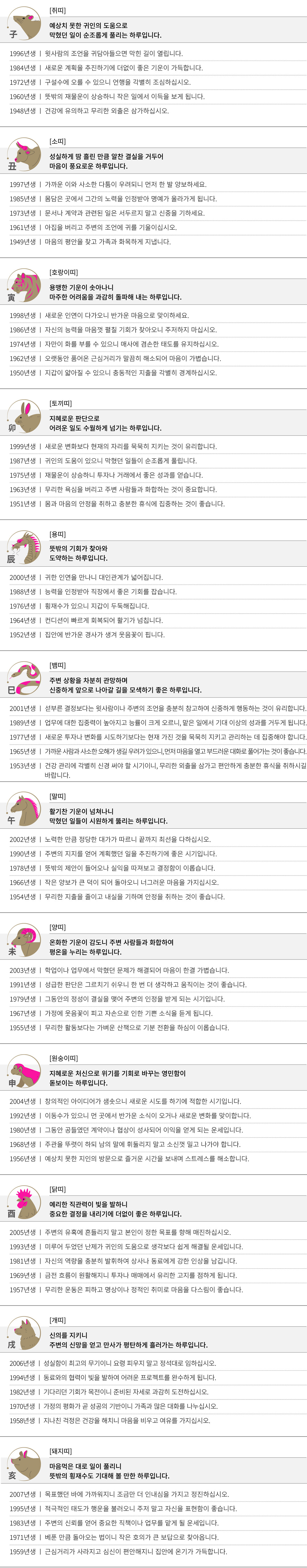 기미 (己未) 오늘의 띠별 운세