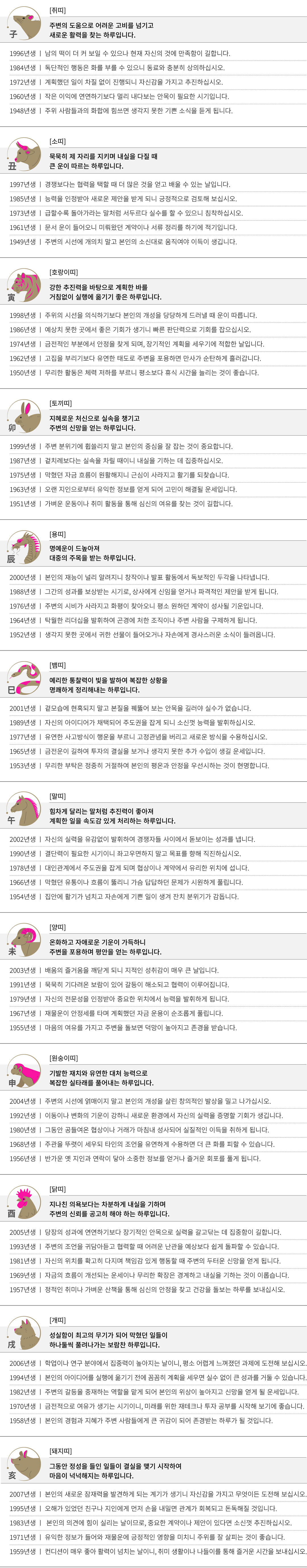 경신 (庚申) 오늘의 띠별 운세