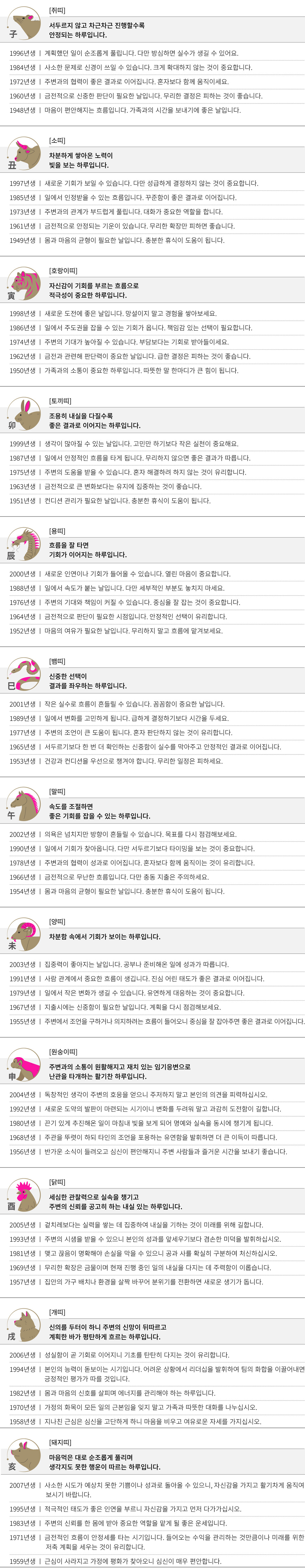 임술 (壬戌) 오늘의 띠별 운세