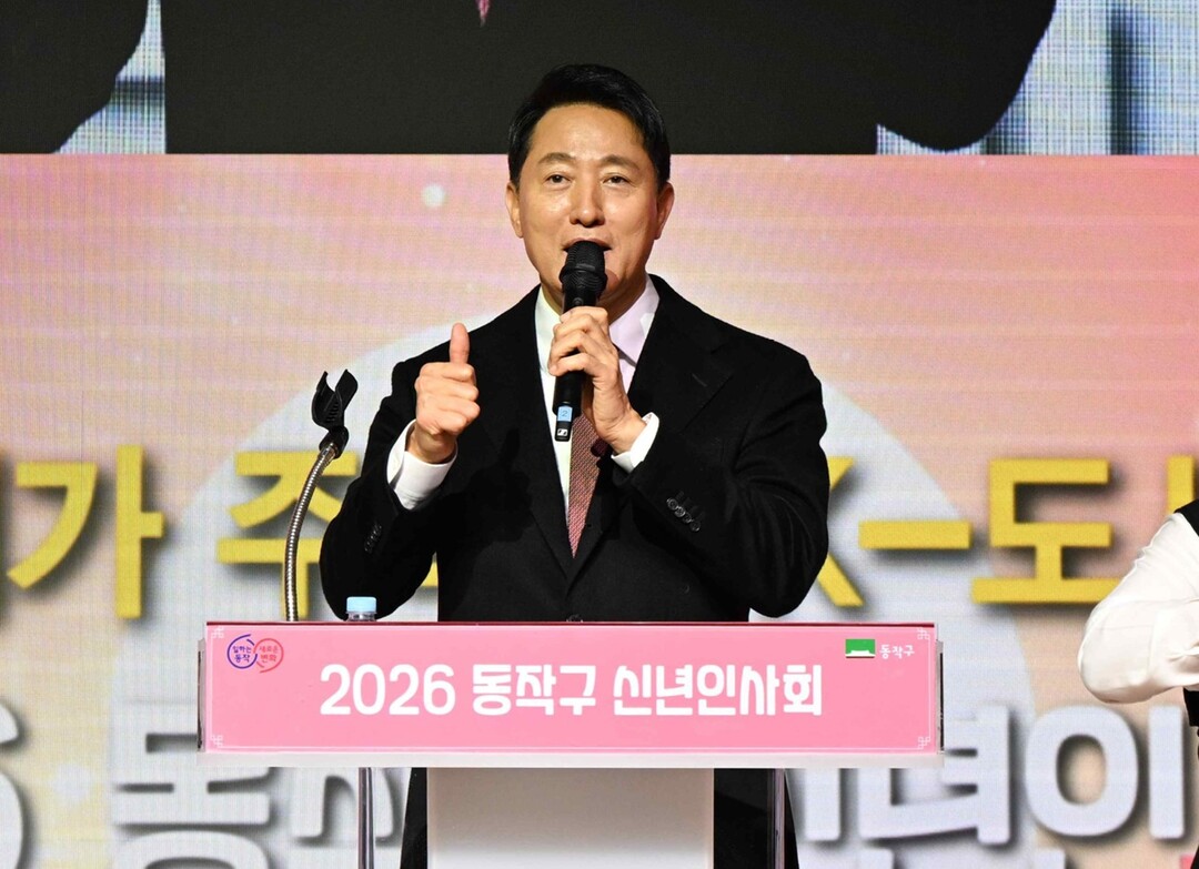 [도시경제채널 = 유주영 기자] 오세훈 서울시장이 6일 동작구청 대강당에서 열린 ‘2026년 동작구 신년인사회’에 참석해 올해 시정 운영 방향을 설명하며 주민들과 소통했다. 이날 행사에는 박일하 동작구청장과 구민 500여 명이 함께했다.