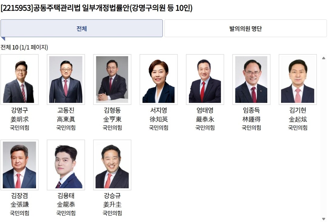 강명구 의원 등 국회의원 10인은 「공동주택관리법 일부개정법률안」을 9일 대표 발의해, 어린이집 임대료와 관련된 관리규약을 시·도지사가 정한 준칙에 반드시 따르도록 하는 내용을 담았다.