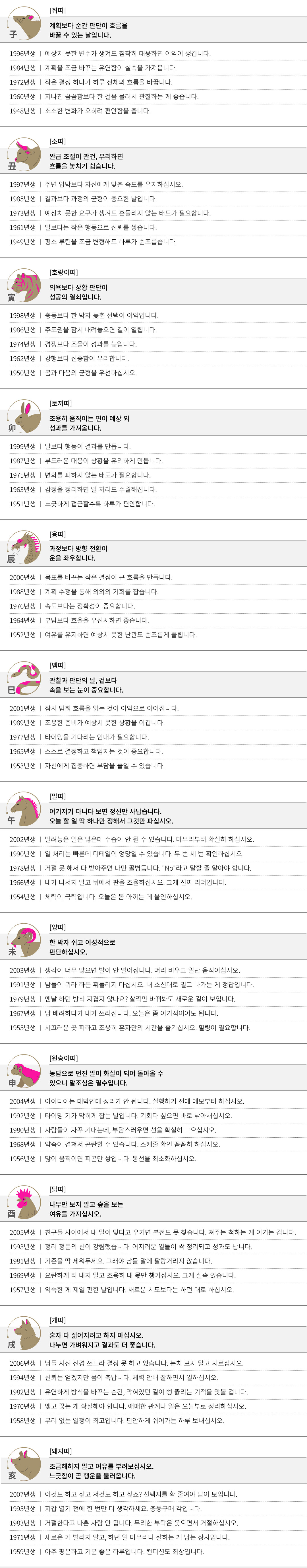 병인 (丙寅) 오늘의 띠별 운세